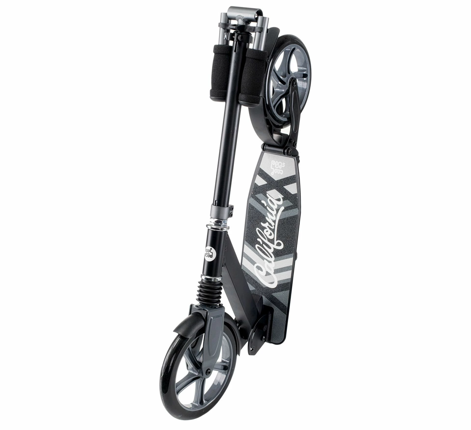 Der Coolslide California Stunt Scooter Roller hat ein Deck aus Aluminium das mit einem rutschfesten Coating versehen ist. Der Lenker ist verstellbar.