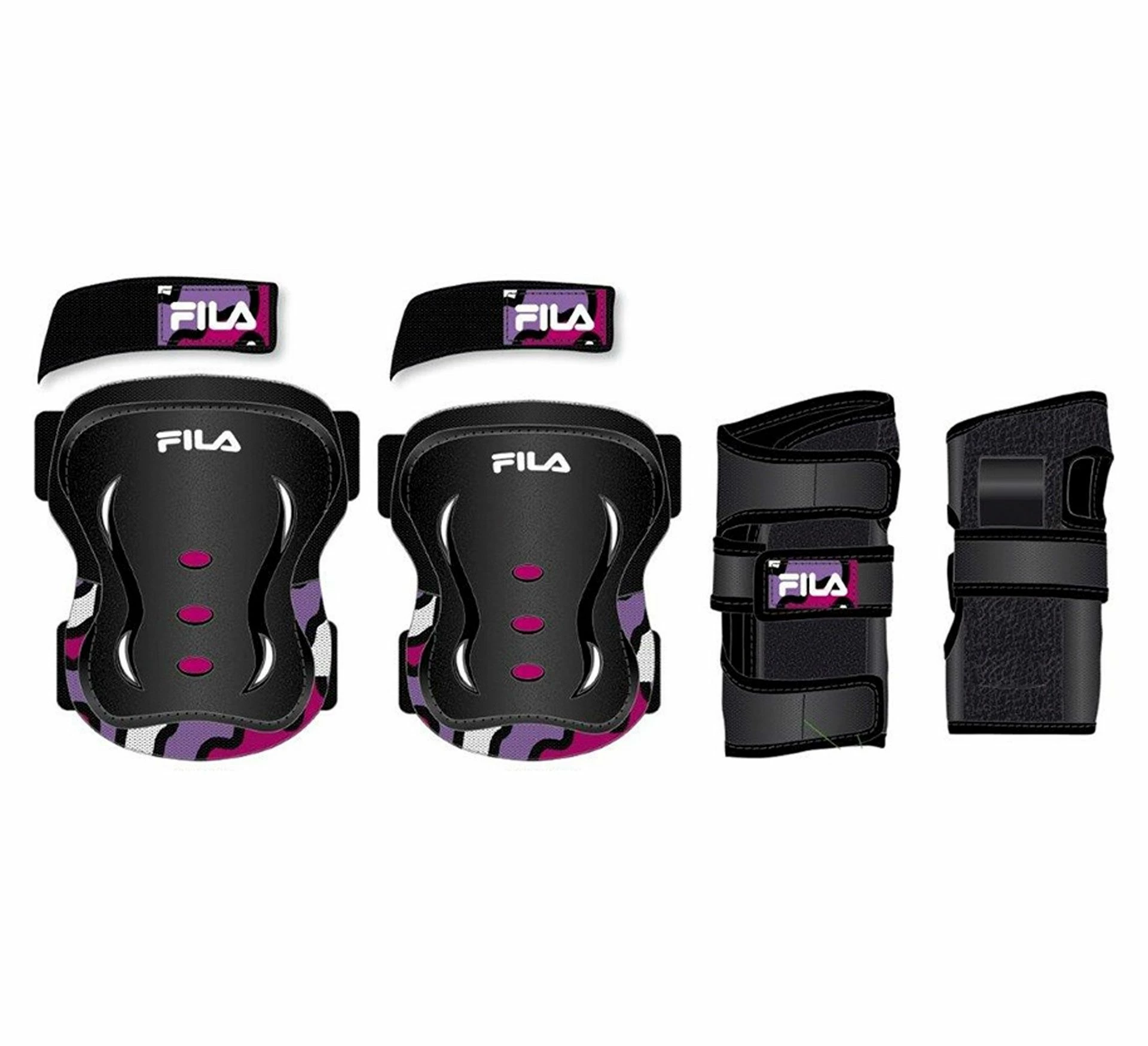 Die Fila Kids Set FP Schutzausstattung für Kinder bietet guten Schutz beim Skaten. Diese Schutz-Ausstattung schützt Knie, Ellbogen und Handgelenke bei eventuellen Stürzen oder Zusammenstößen.