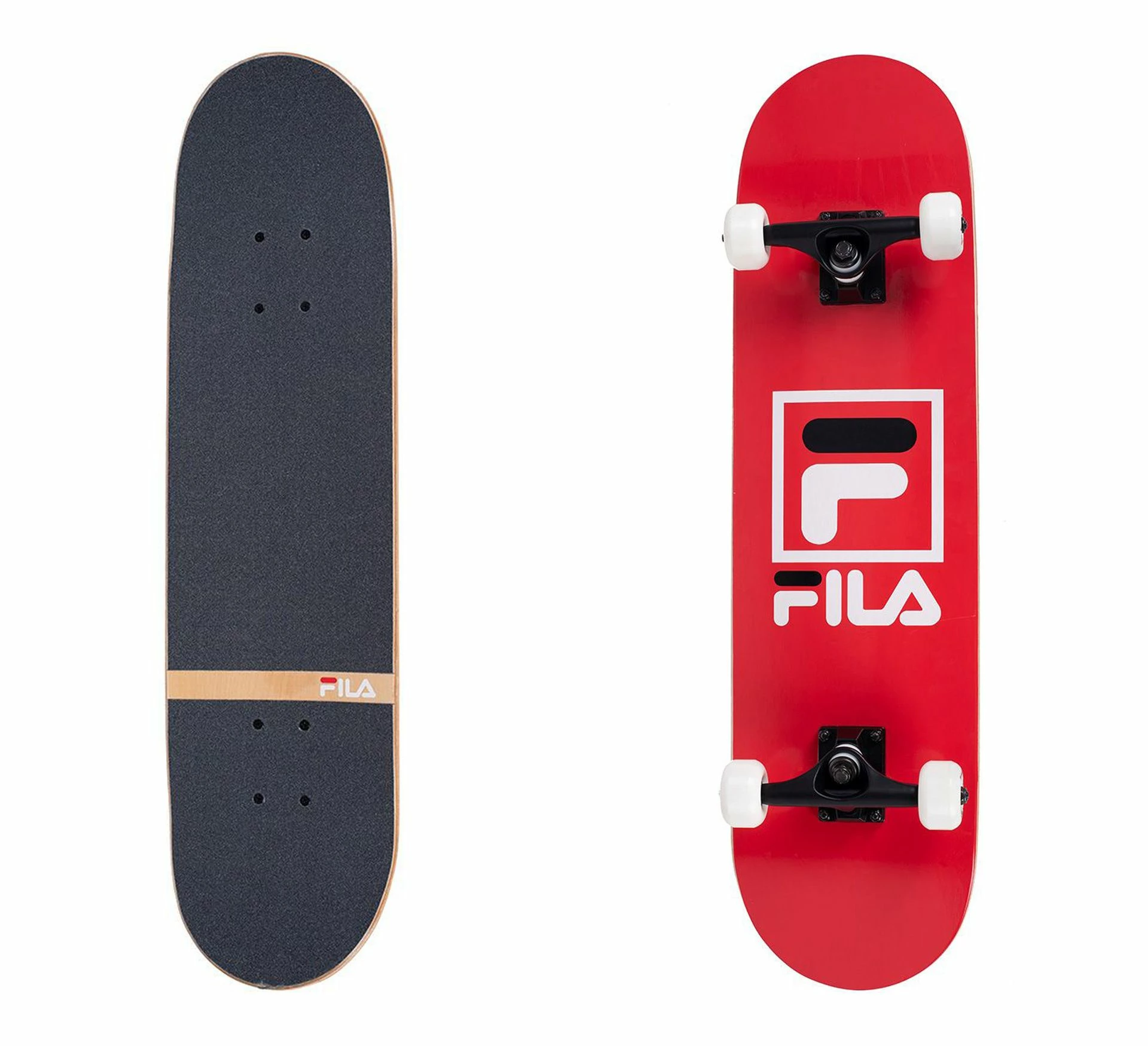 Das Fila Complete Skateboardist ein Skateboard für Kinder das mit einem Logoprint versehen ist.