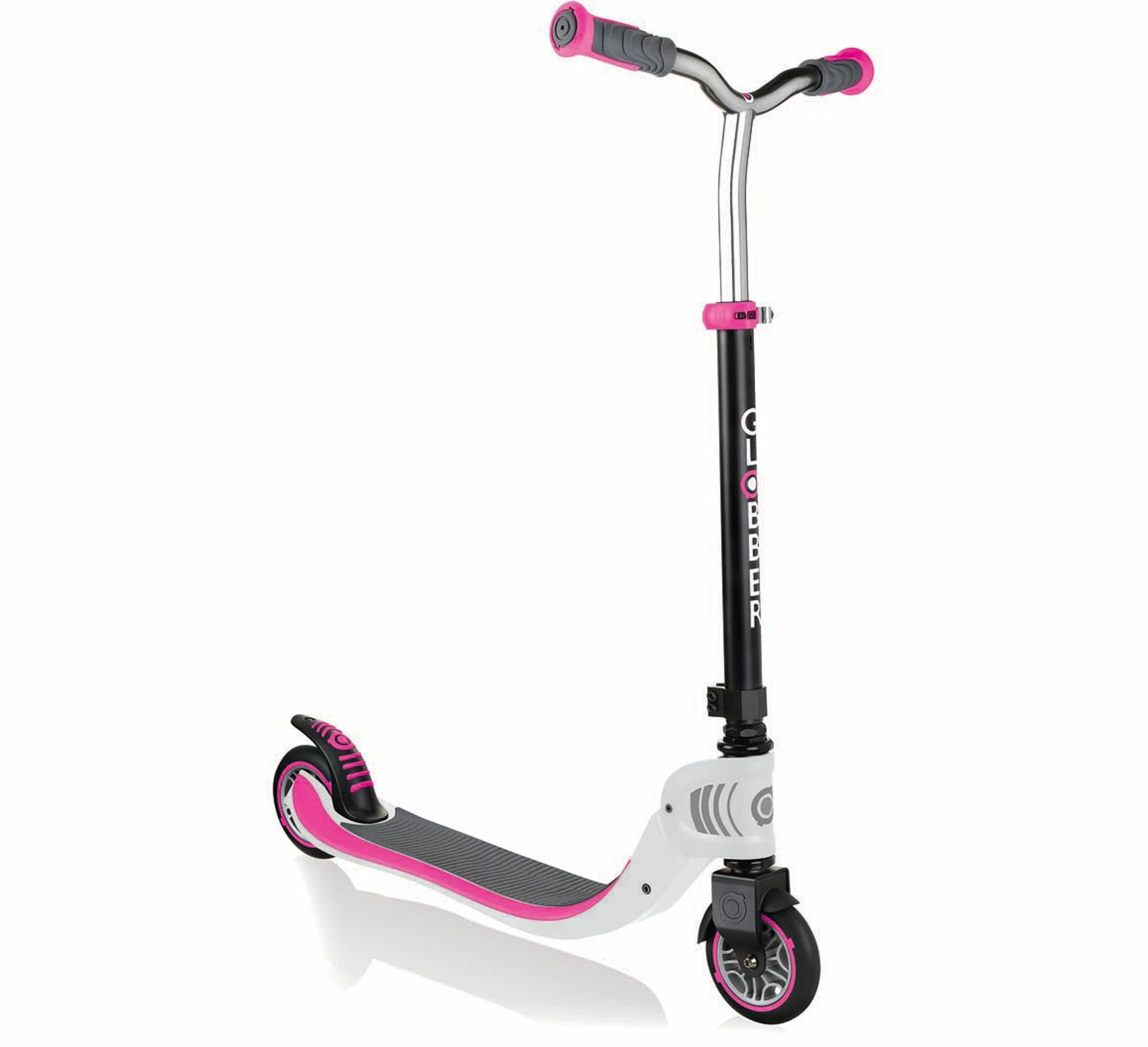 Der Globber Foldable Flow 125 Stunt Scooter ist ein Roller aus Stahl mit einer in Höhe verstellbaren und einklappbaren Lenkstange.