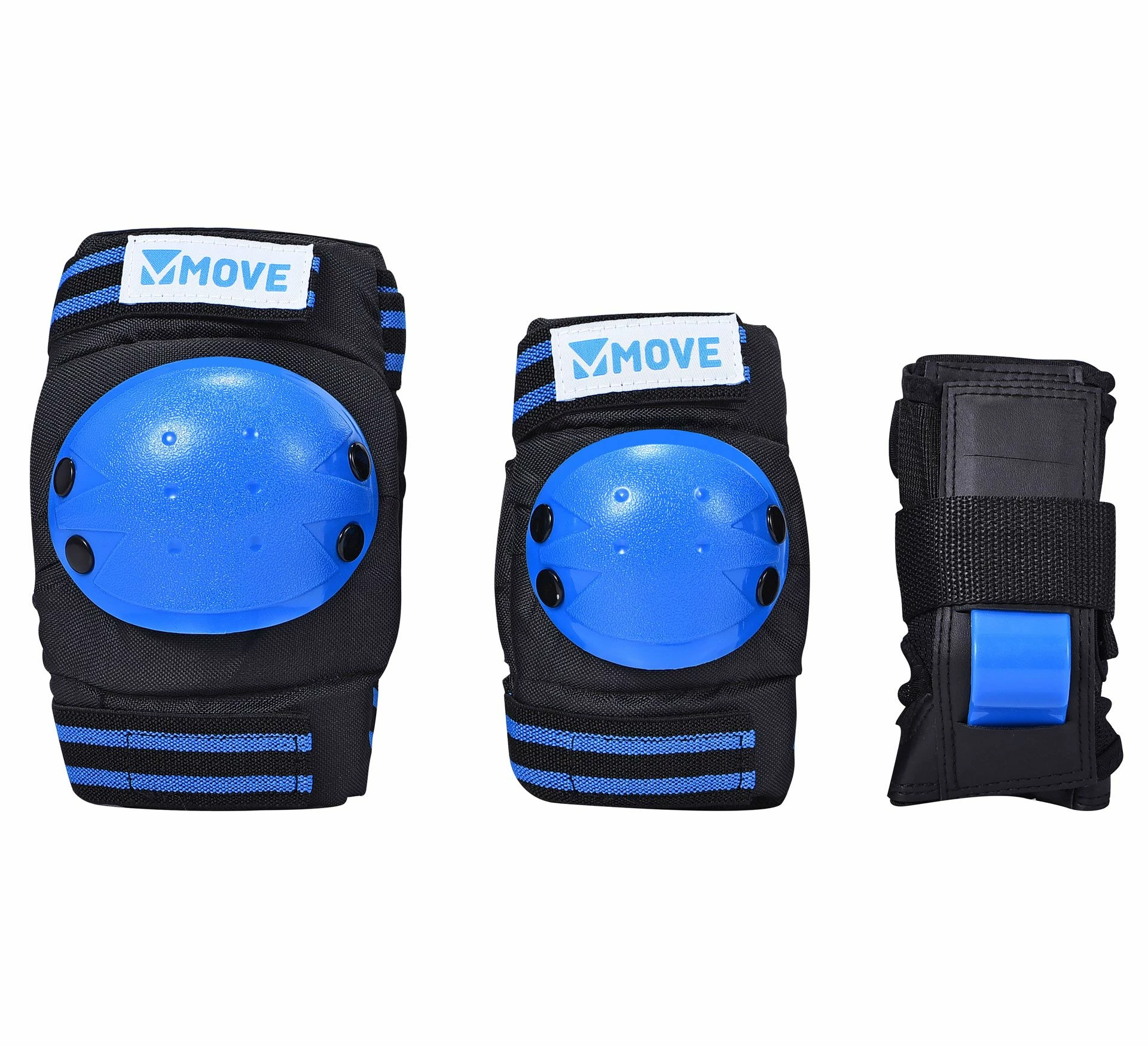 Die Move Kids Schutzausstattung schützt die Knie, Ellbogen und Handgelenke bei eventuellen Stürzen während des Skatens.