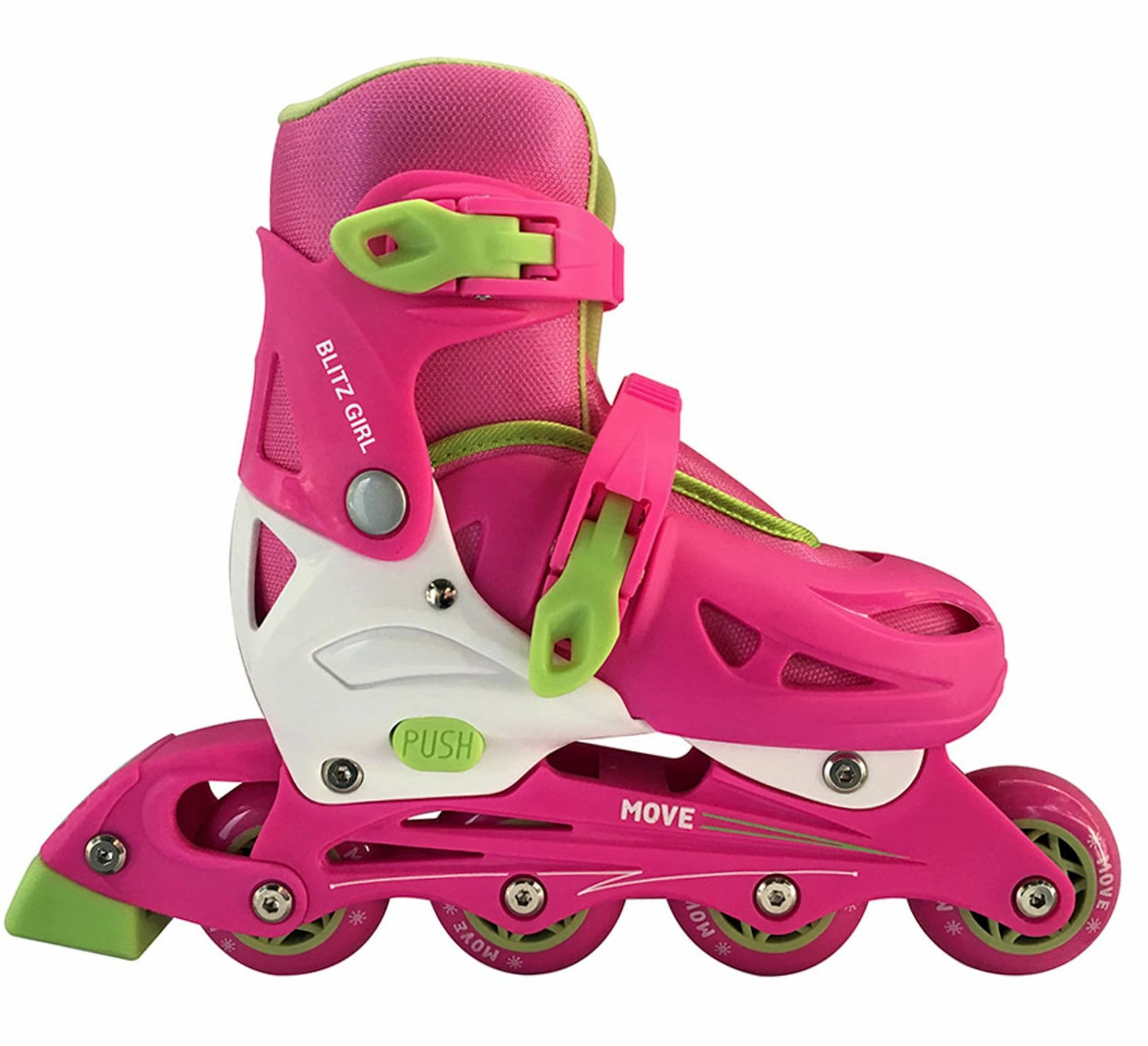 Die Move Blitz Skates für Kinder sind verstellbare Inlineskates mit einem semi-softboot Schuh der dem Fuß und Knöchel ausgezeichneten Halt bietet. Dieser Schuh sitzt wirklich sehr bequem.