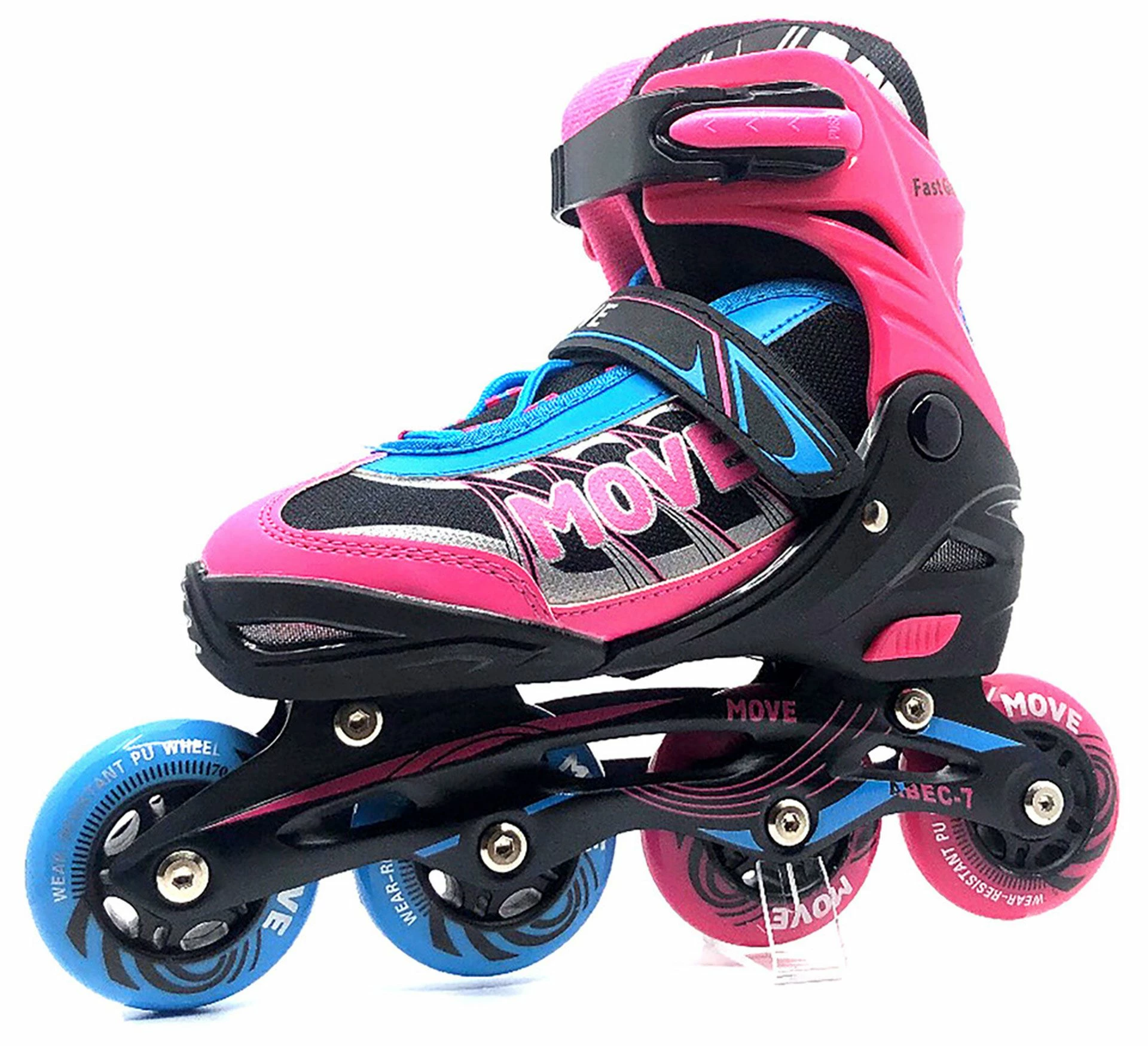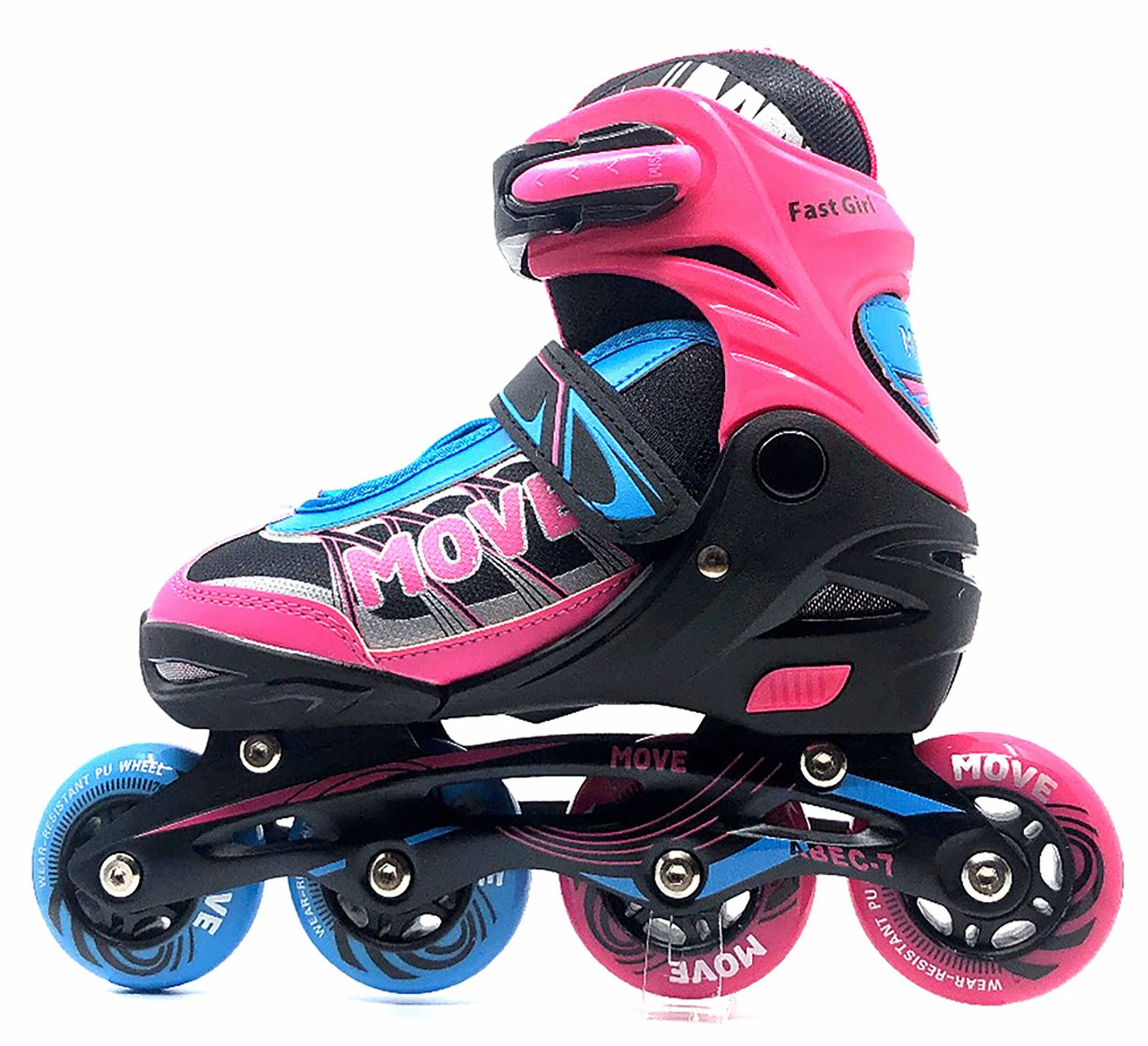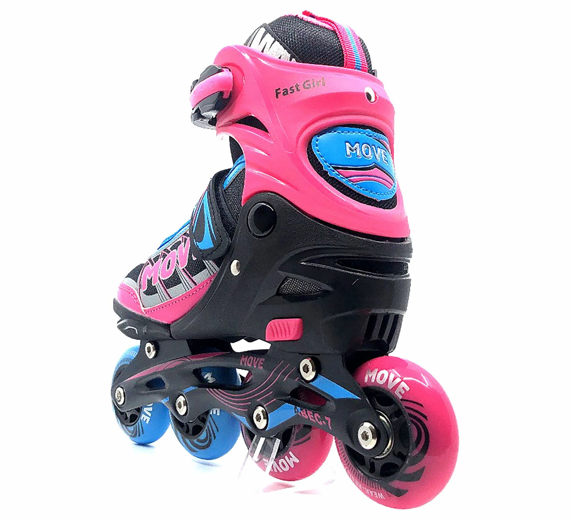 Die Move Fast Girl Skates für Kinder sind verstellbare Inlineskates mit einem semi-softboot Schuh der bequem sitzt und der Fuß und Knöchel guten Halt bietet.