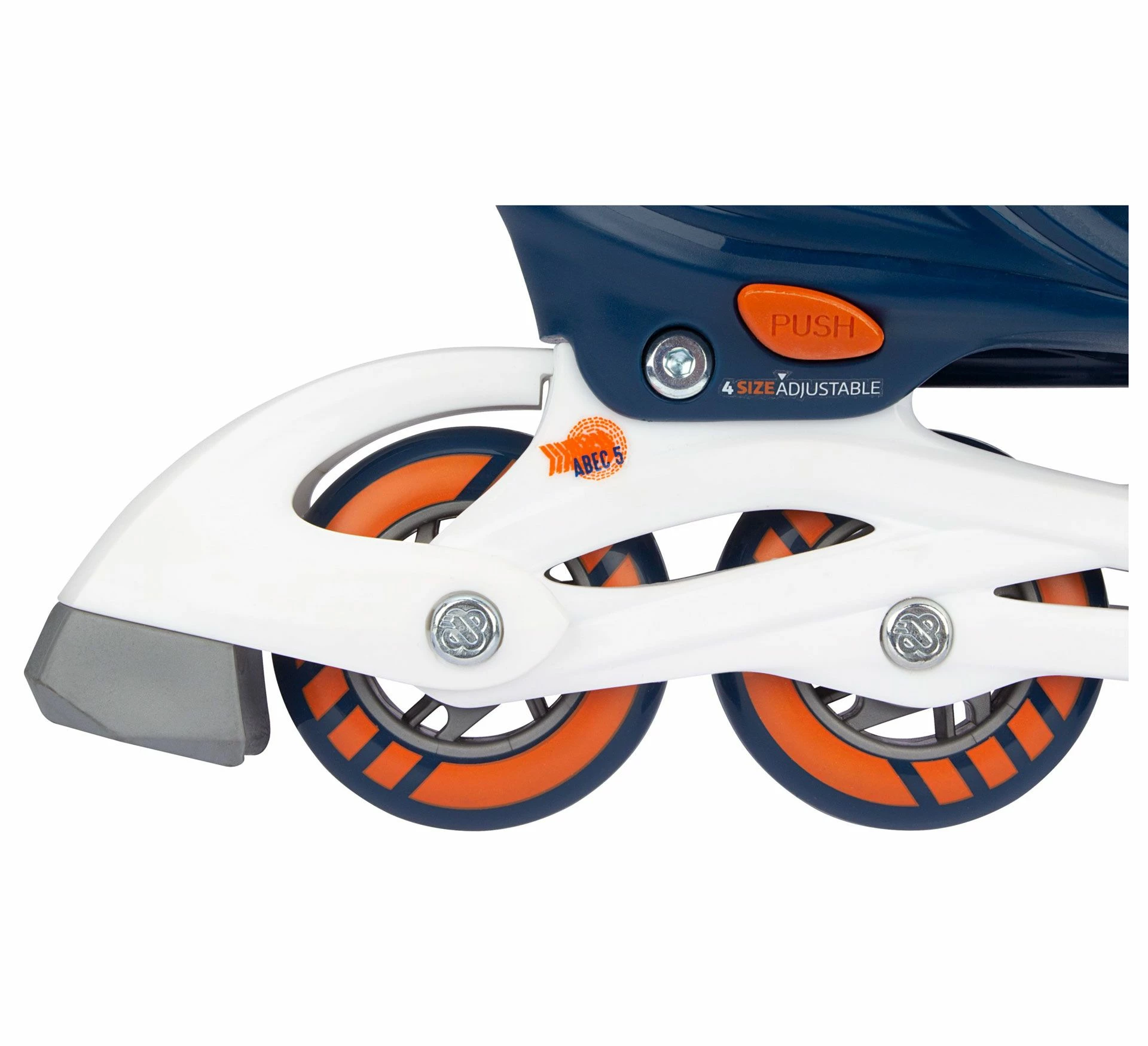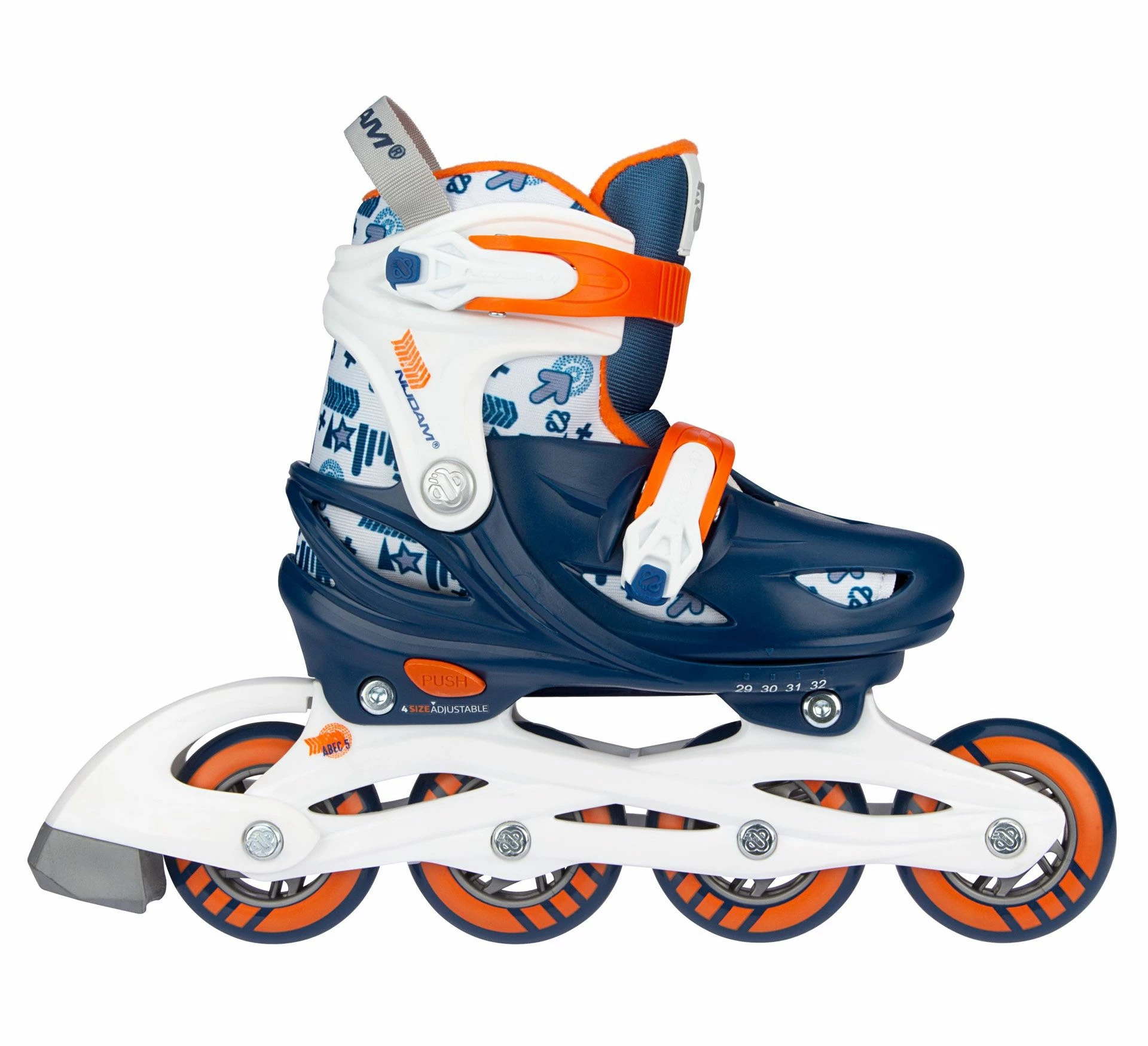 In 4 Größen verstellbar durch Druckknop im Fersenbereich