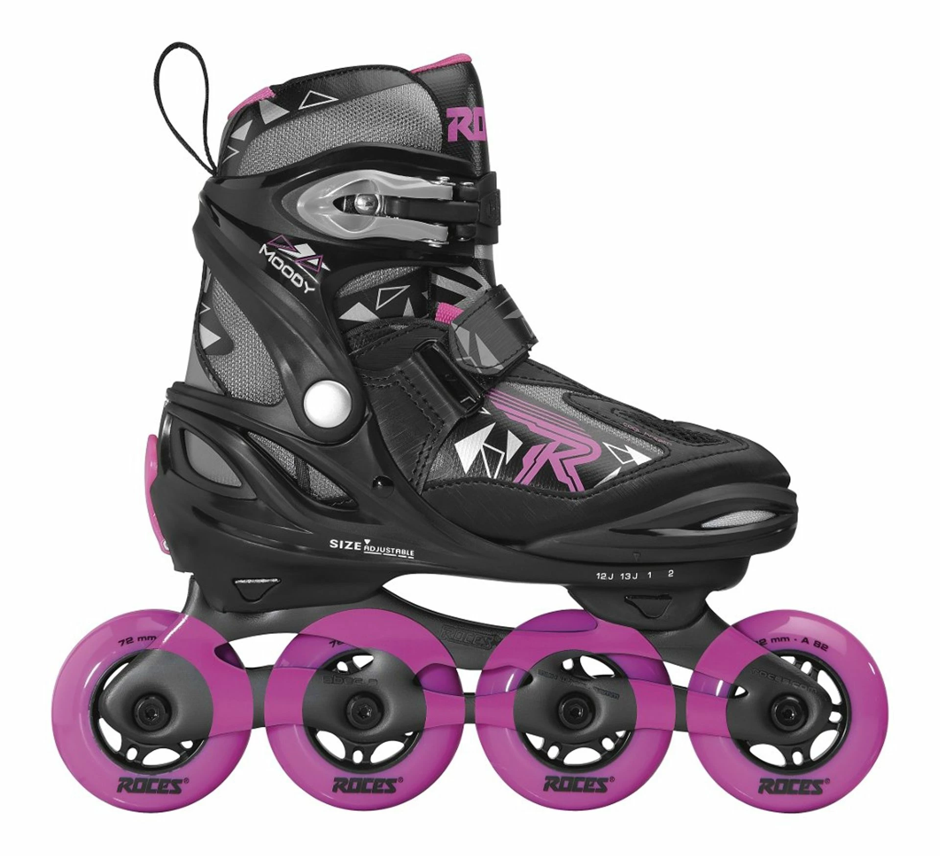 Der Roces Moody 4.0 Skate für Kinder ist ein verstellbarer Skate mit einem semi-softboot Schuh der bequem sitzt und dennoch Fuß und Knöchel genügend Halt bietet.