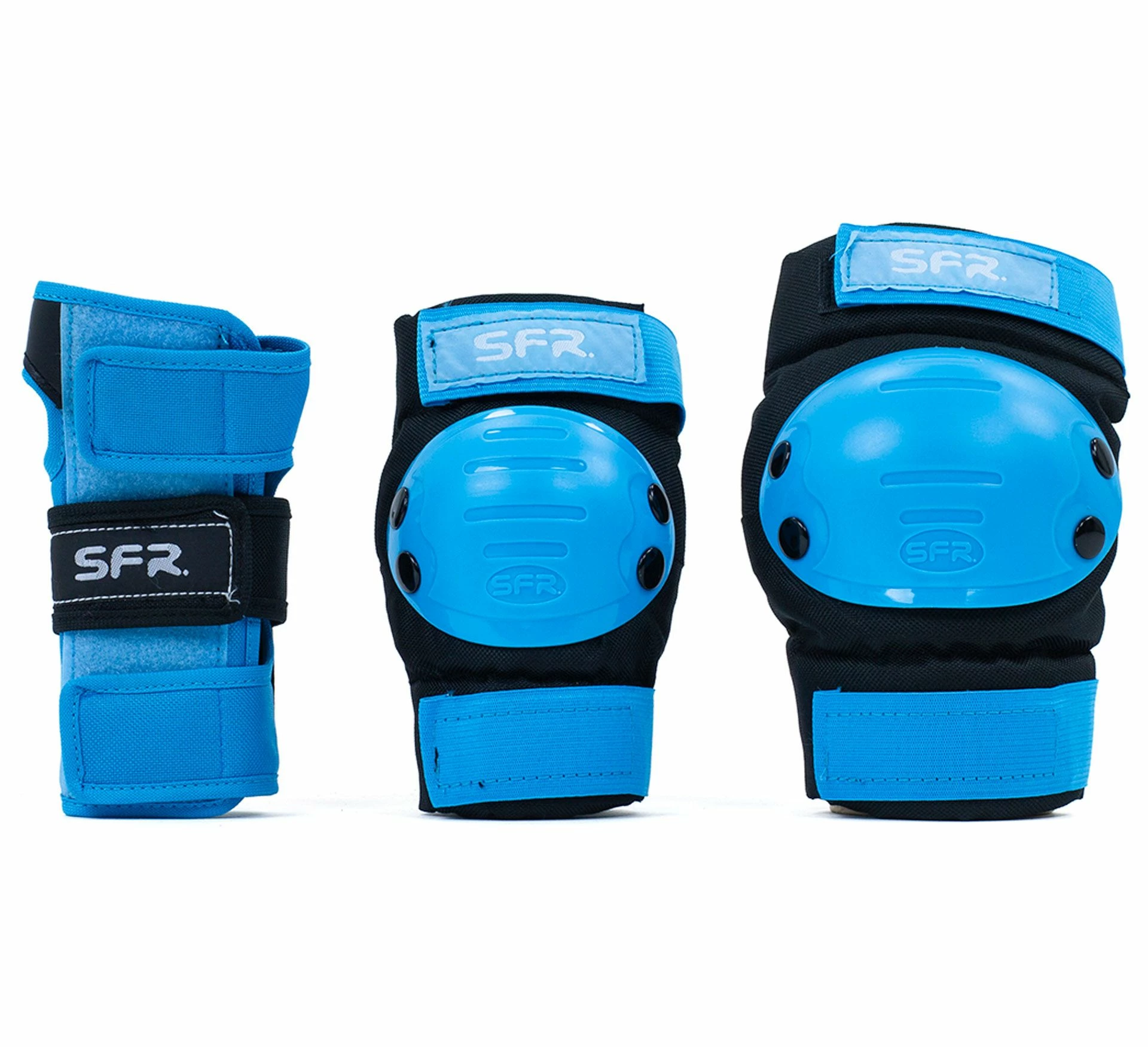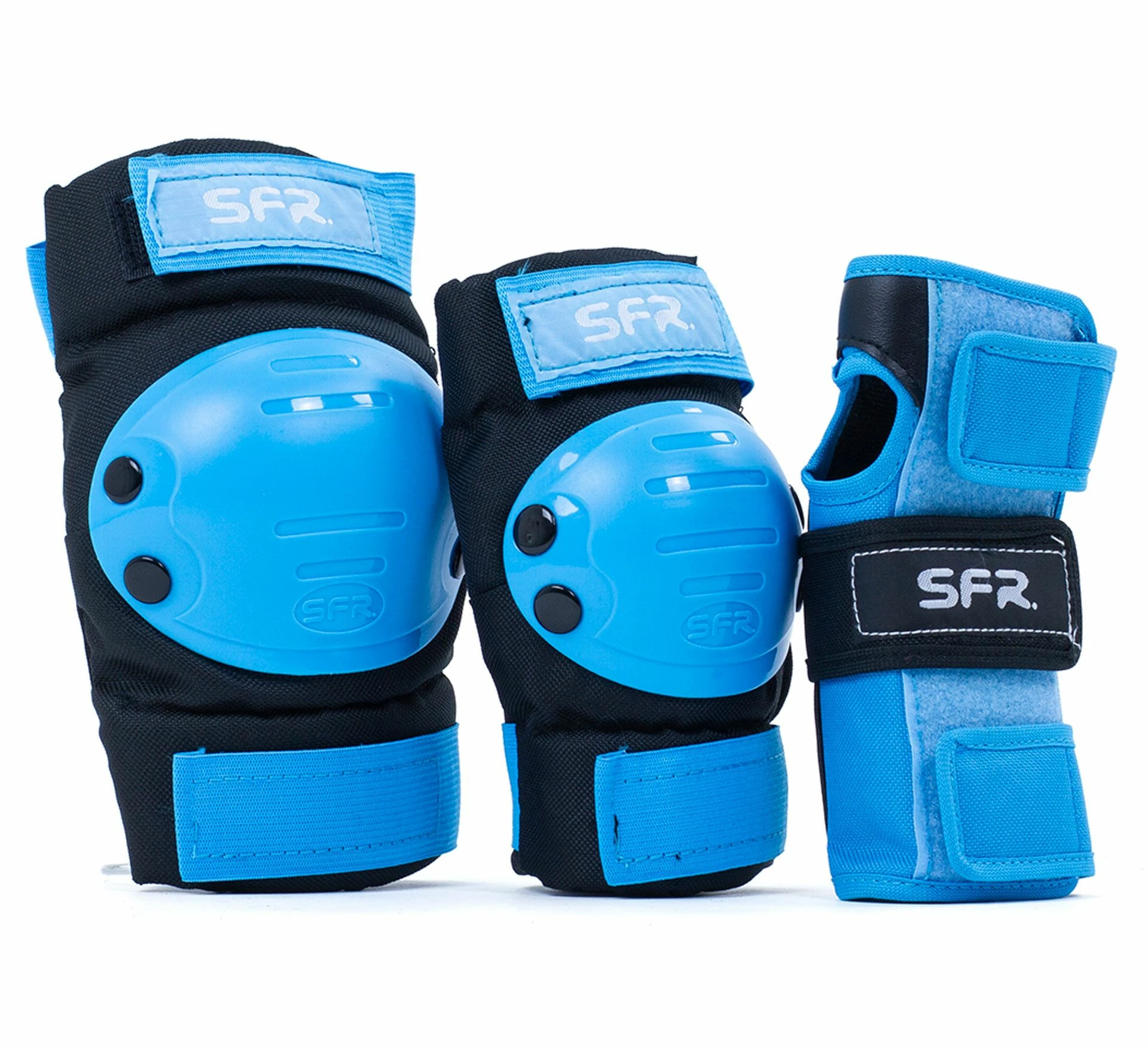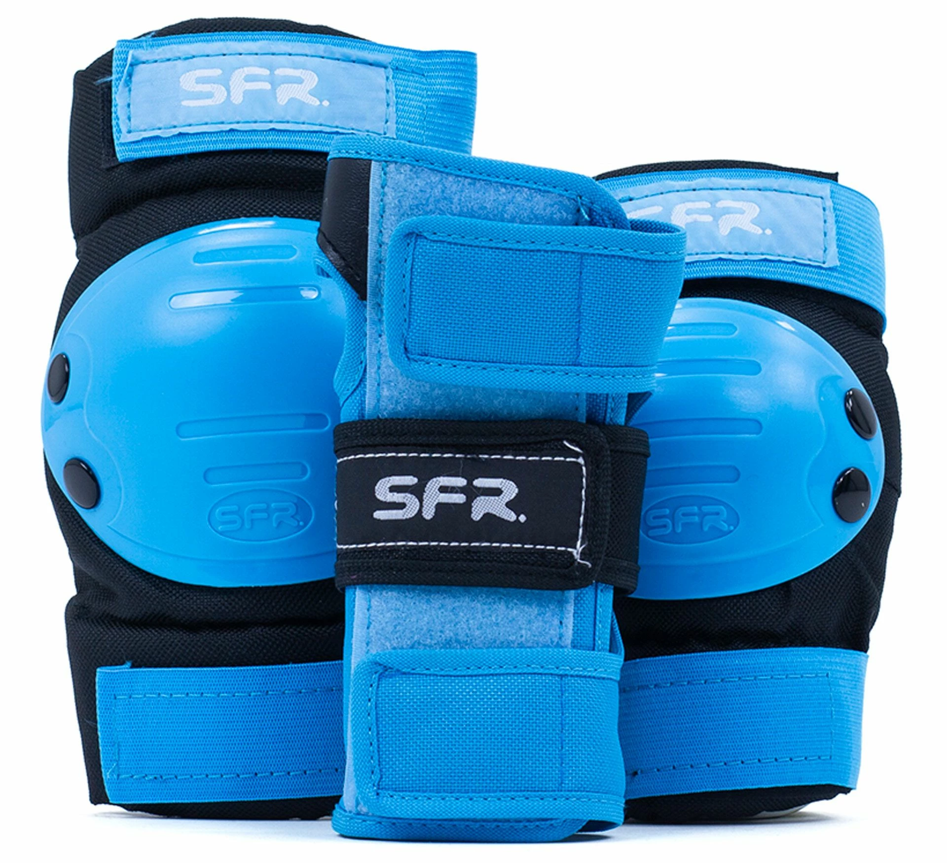 Die SFR Essentials Triple Pad Schutzausstattung für Kinder besteht aus jeweils zwei Knie-, Ellbogen- und Handgelenkschoner