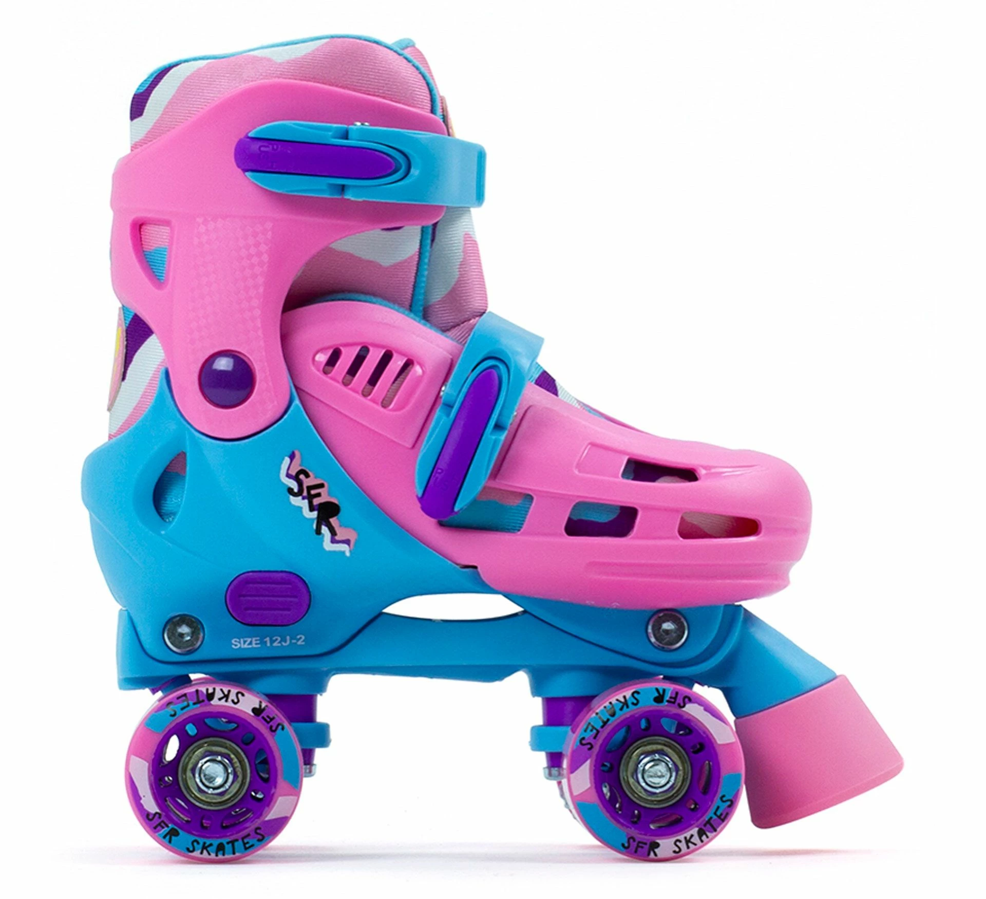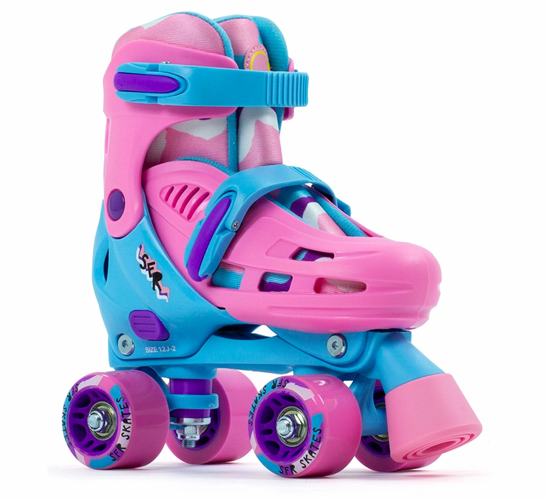 Der SFR Hurricane III Quad Rollerskate für Mädchen ist ein Rollschuh mit einem Hardboot Schuh der bequem sitzt und Fuß und Knöchel guten Halt bietet.