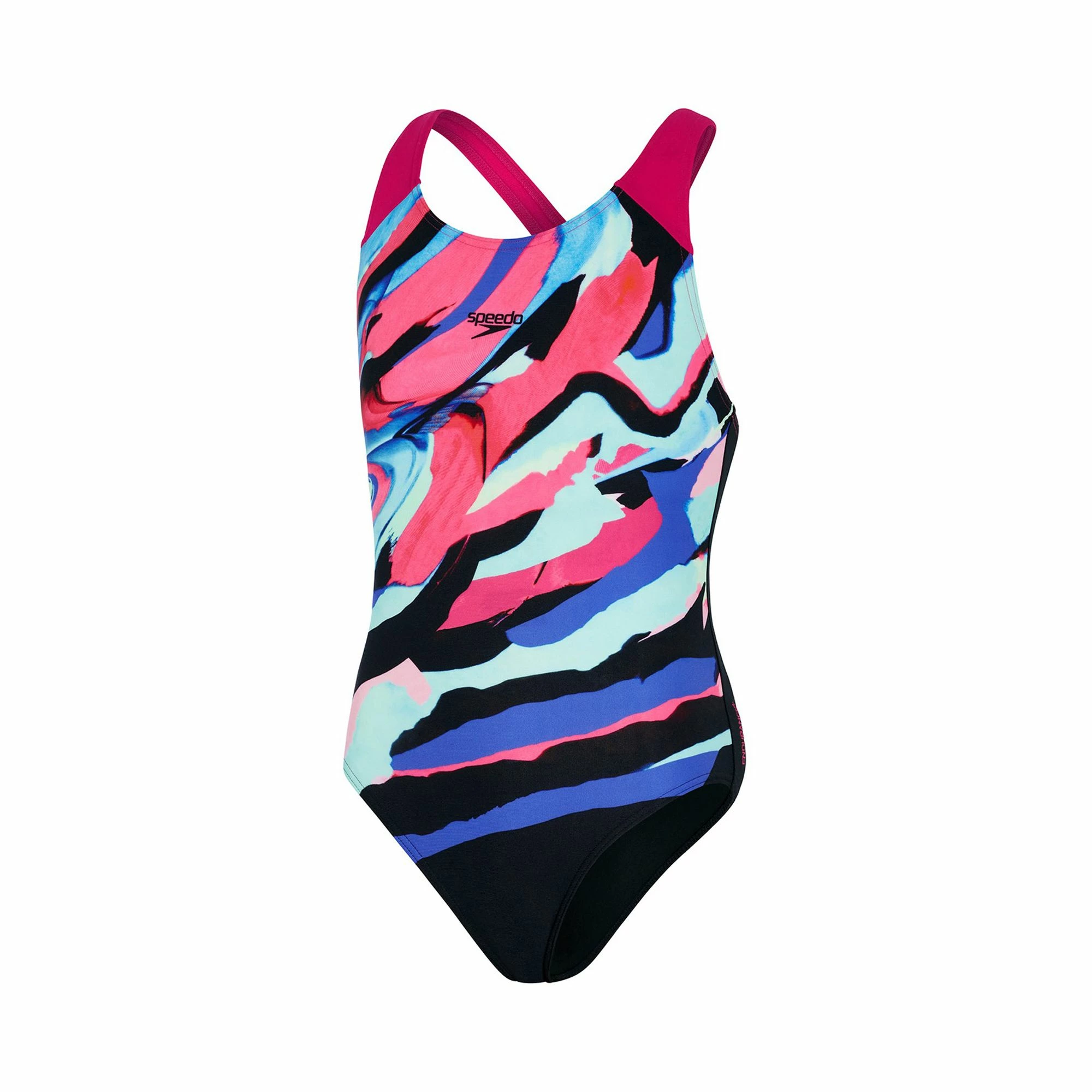 Speedo Digital Placement Splashback Badeanzug Mädchen Schwarz – Rosa – Blau