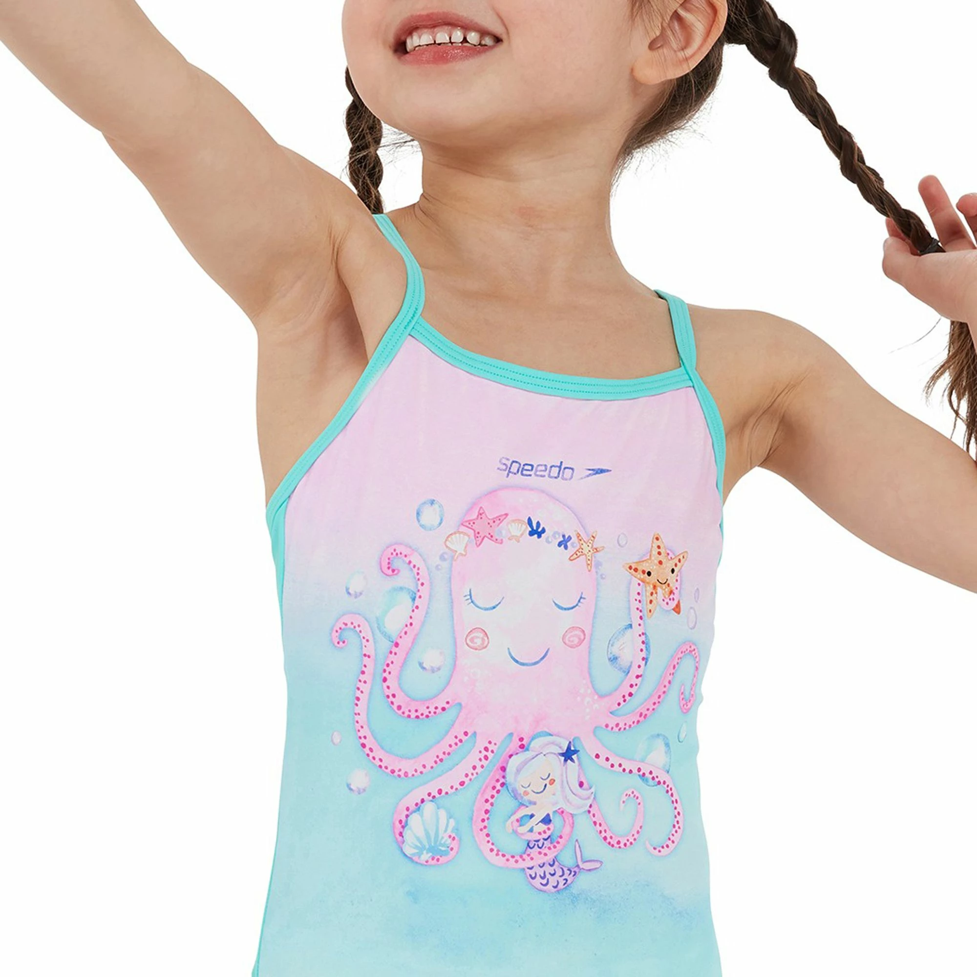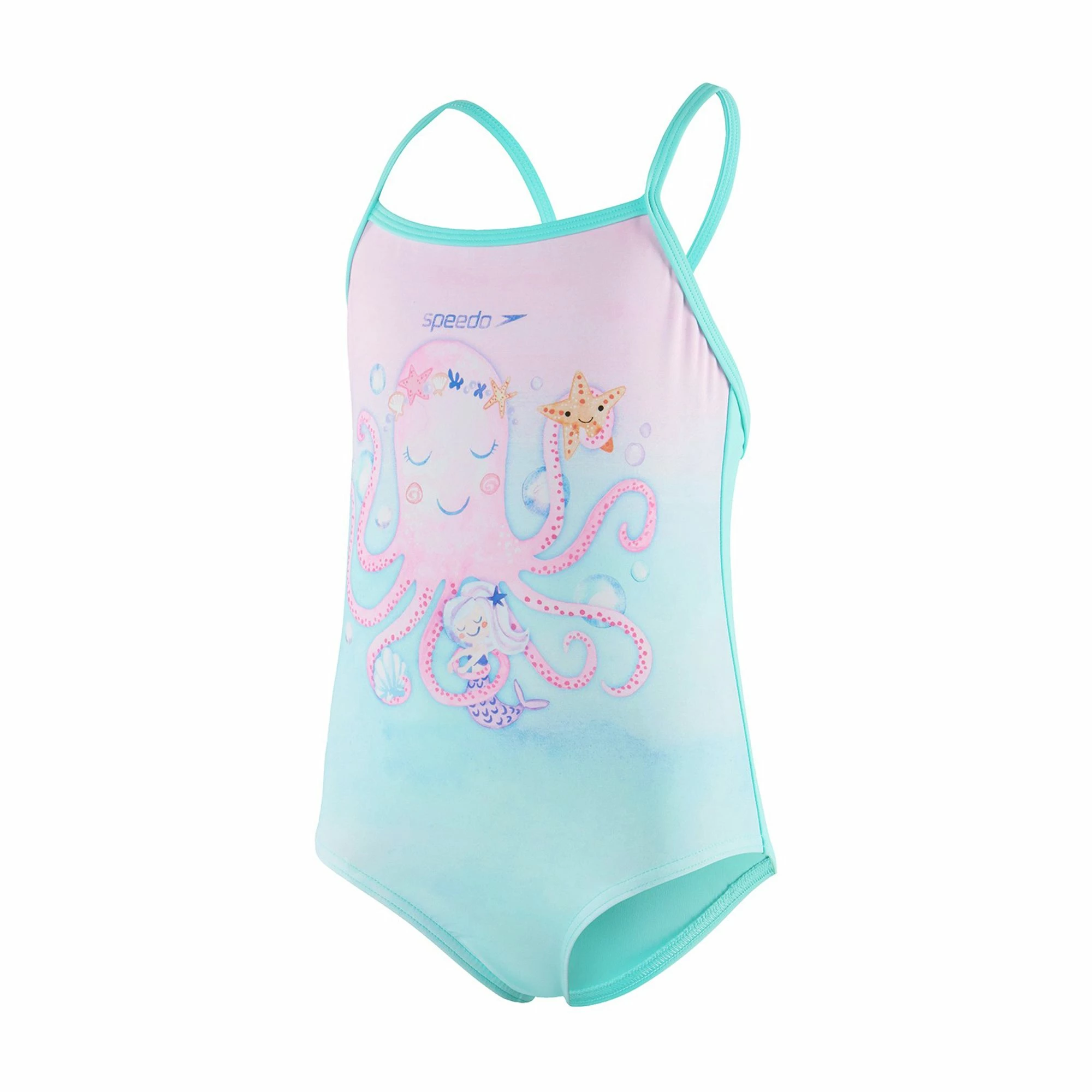 Der Speedo Digital Thinstrap Applique Badeanzug für Mädchen ist ein sportlicher Badeanzug, perfekt zum Schwimmen und Spielen im Wasser.