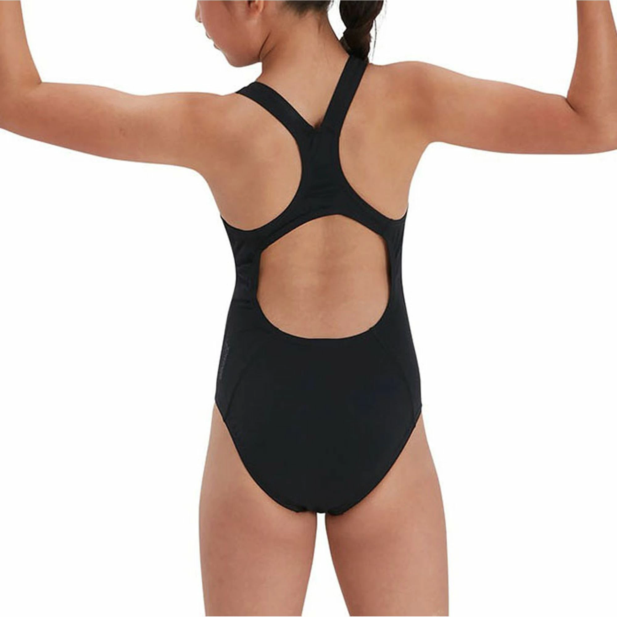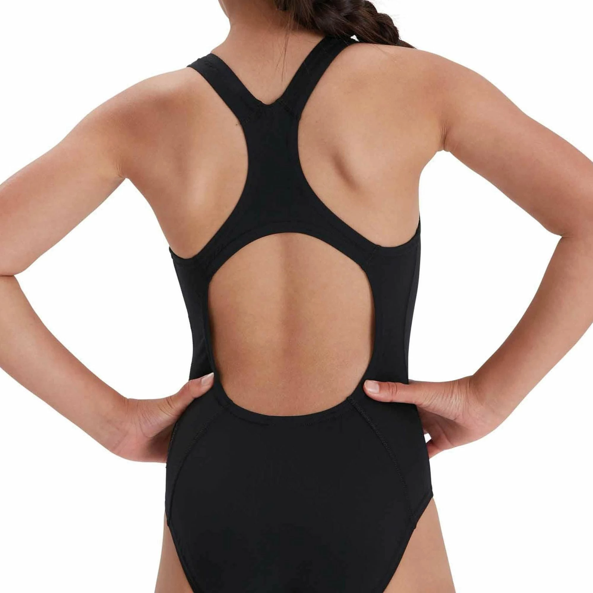 Der Speedo ECO Endurance+ Medalist Badeanzug für Mädchen ist ein sportlicher Badeanzug aus einem schnelltrocknenden, chlorbeständigen Material.
