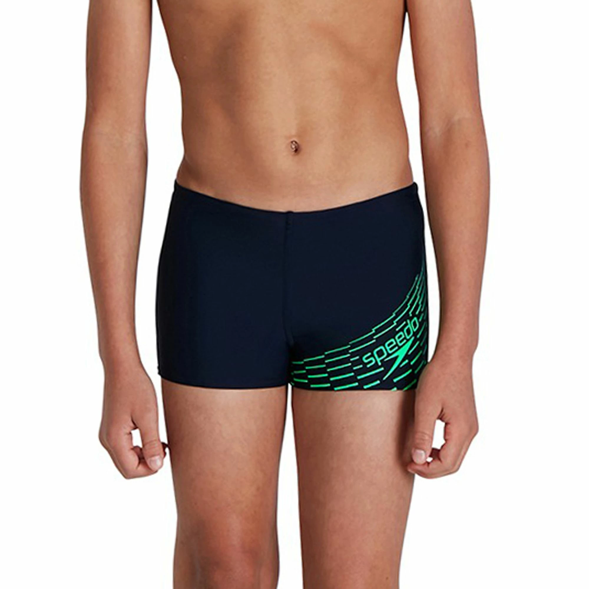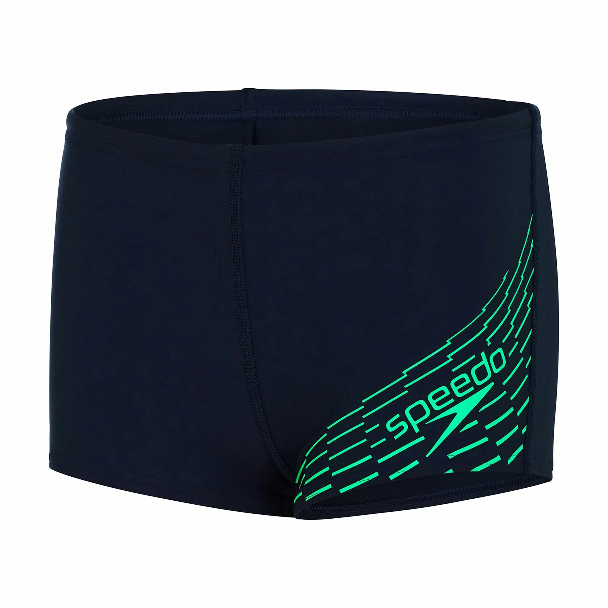 Die Speedo Eco Medley Logo Schwimmshort für Kinder ist eine kurze Badehose mit eng anliegenden Hosenbeinen und einem Kordelzug für eine gute Passform.