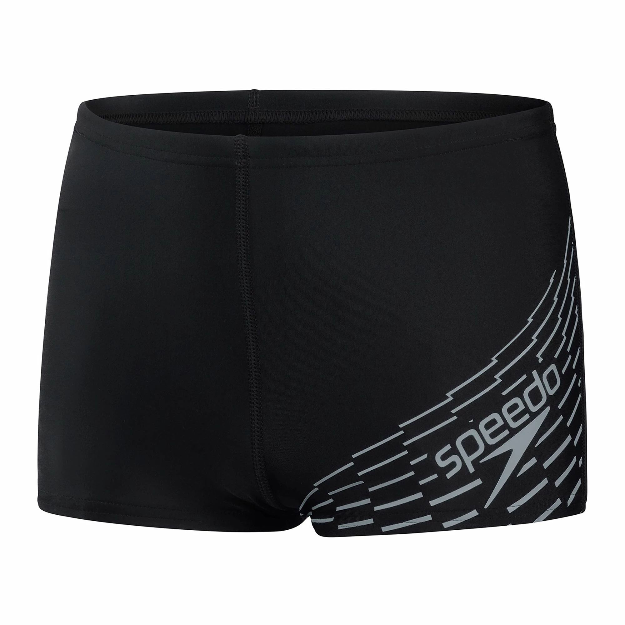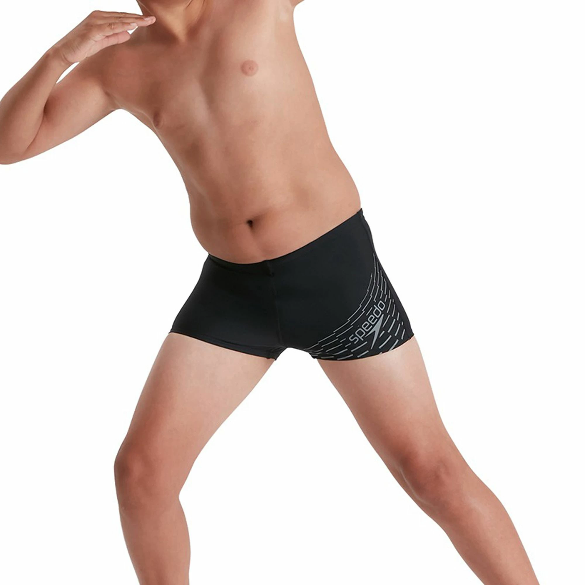 Die Speedo Eco Medley Logo Schwimmshort für Kinder ist eine kurze Badehose mit eng anliegenden Hosenbeinen und einem Kordelzug für eine gute Passform.