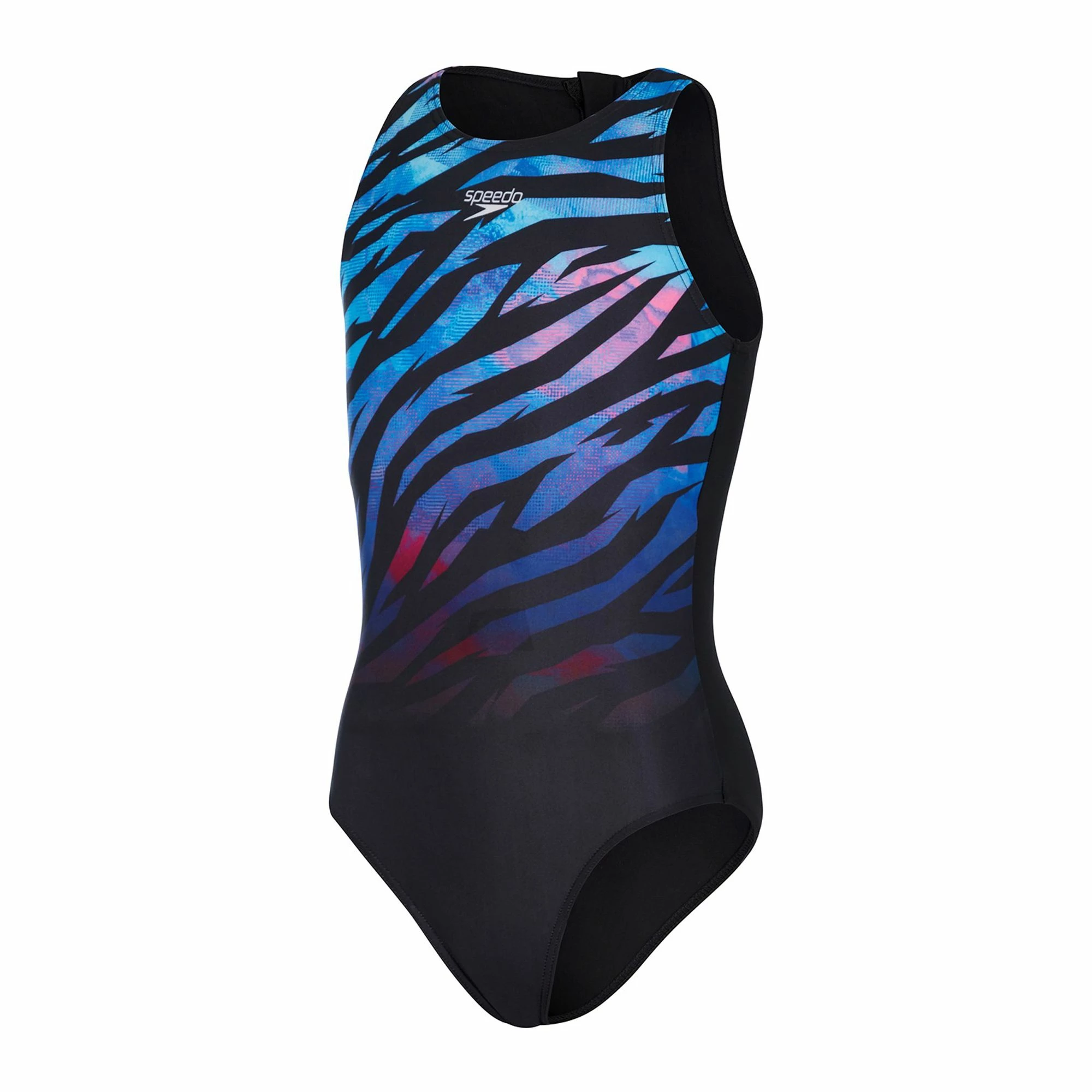 Der Speedo ECO Placement Hydrasuit Badeanzug für Mädchen ist ein sportlicher Badeanzug, perfekt für das Schwimmtraining.