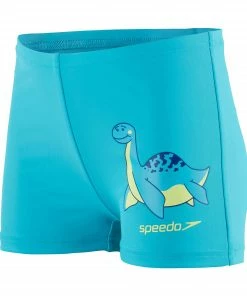 Die Speedo Placement Badeshort für Jungens ist eine kurze Badehose mit engen Hosenbeinen und einem Kordelzug.