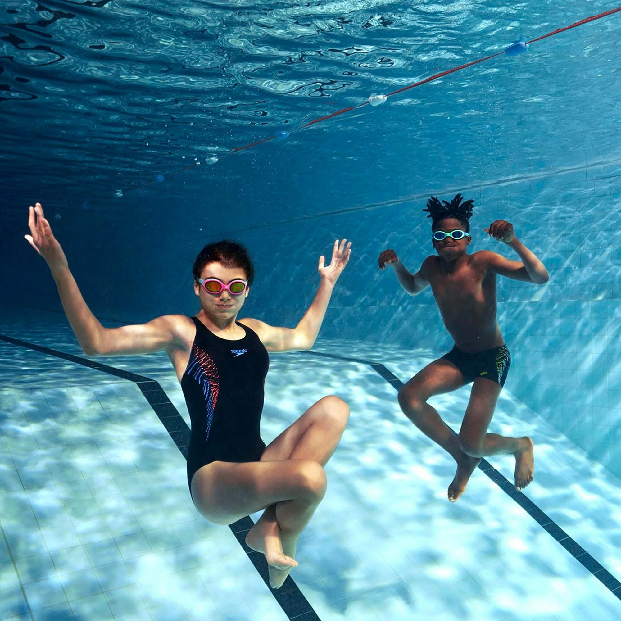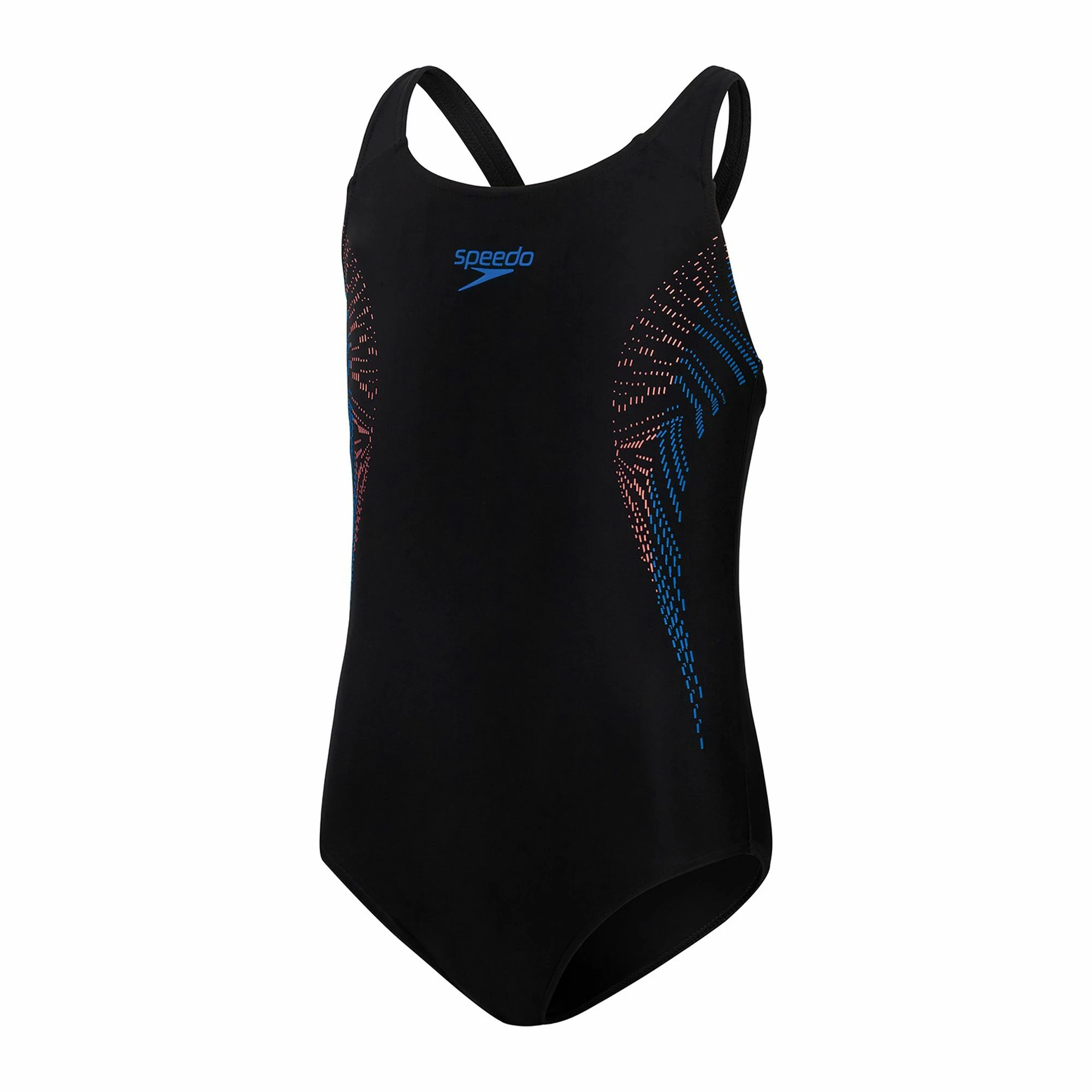 Der Speedo Plastisol Placement Muscleback Badeanzug für Mädchen ist ein schnelltrocknender Badeanzug mit einem Muscleback.
