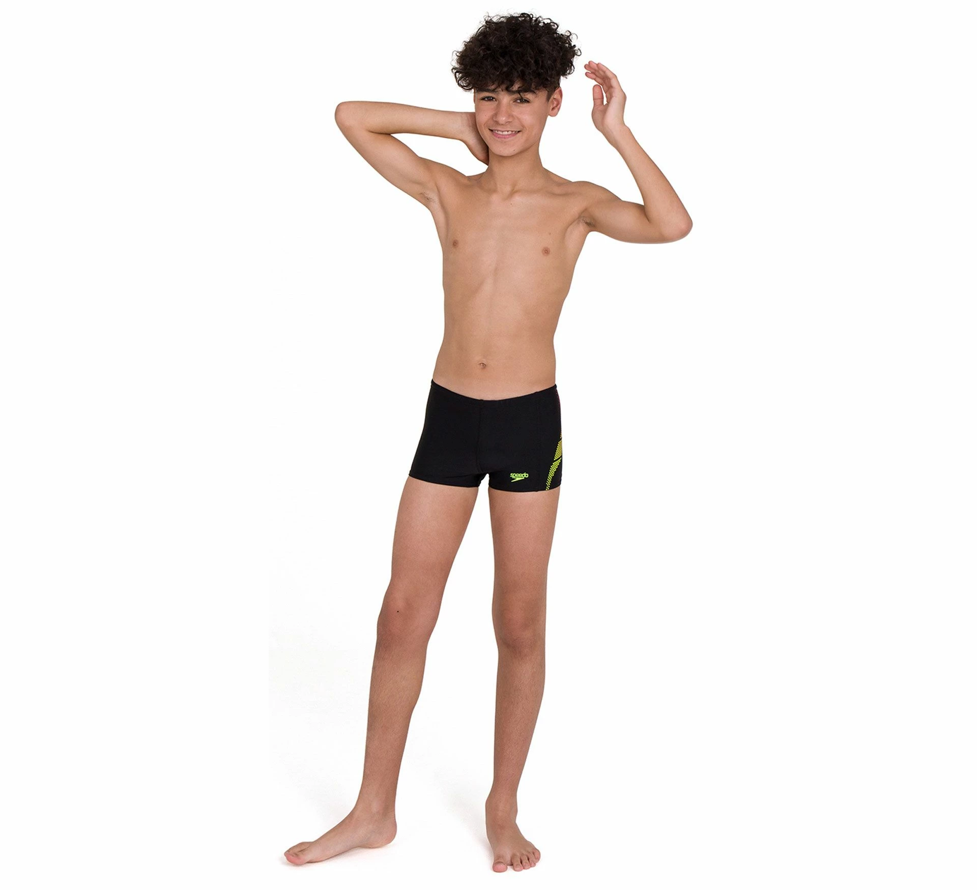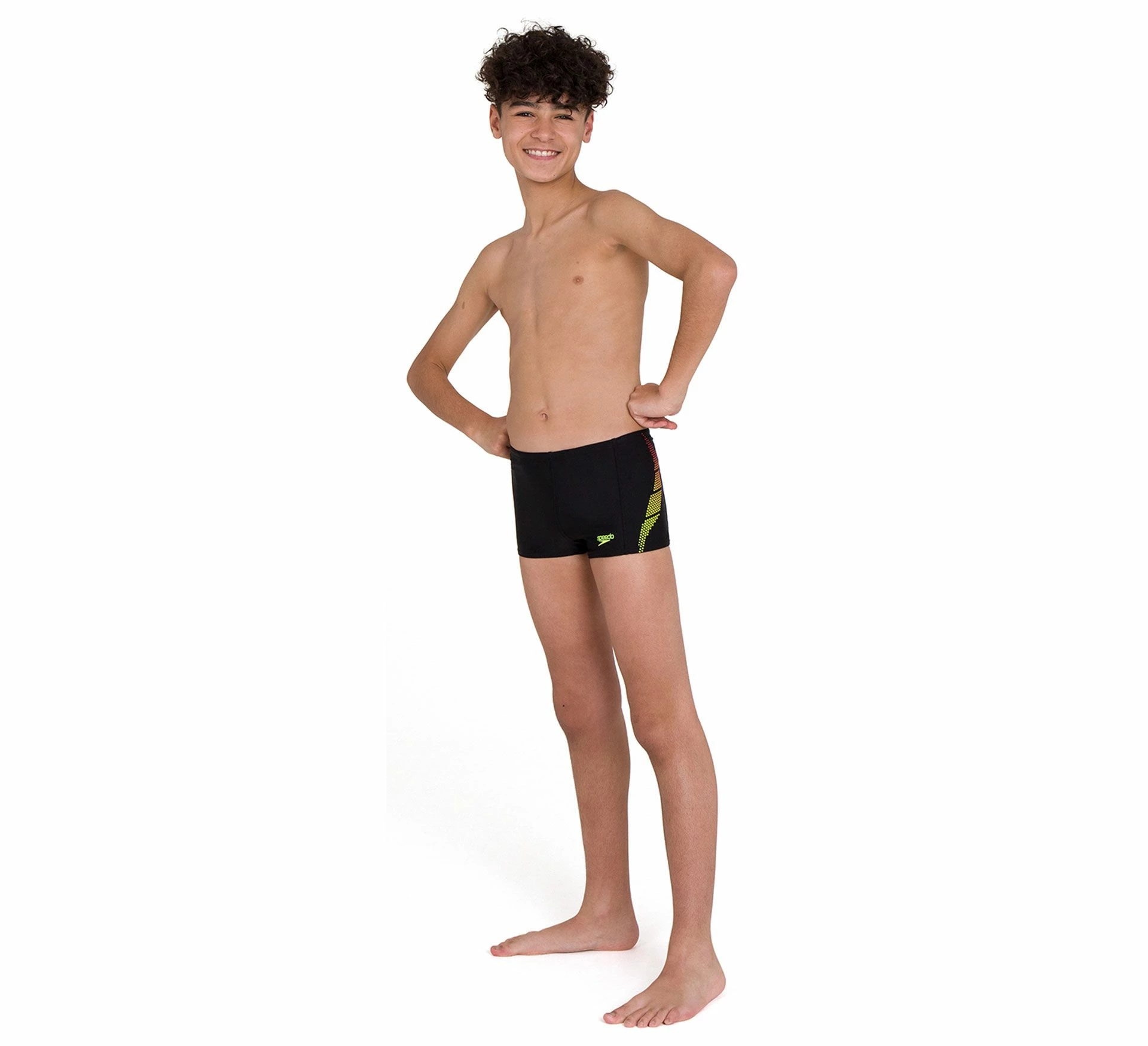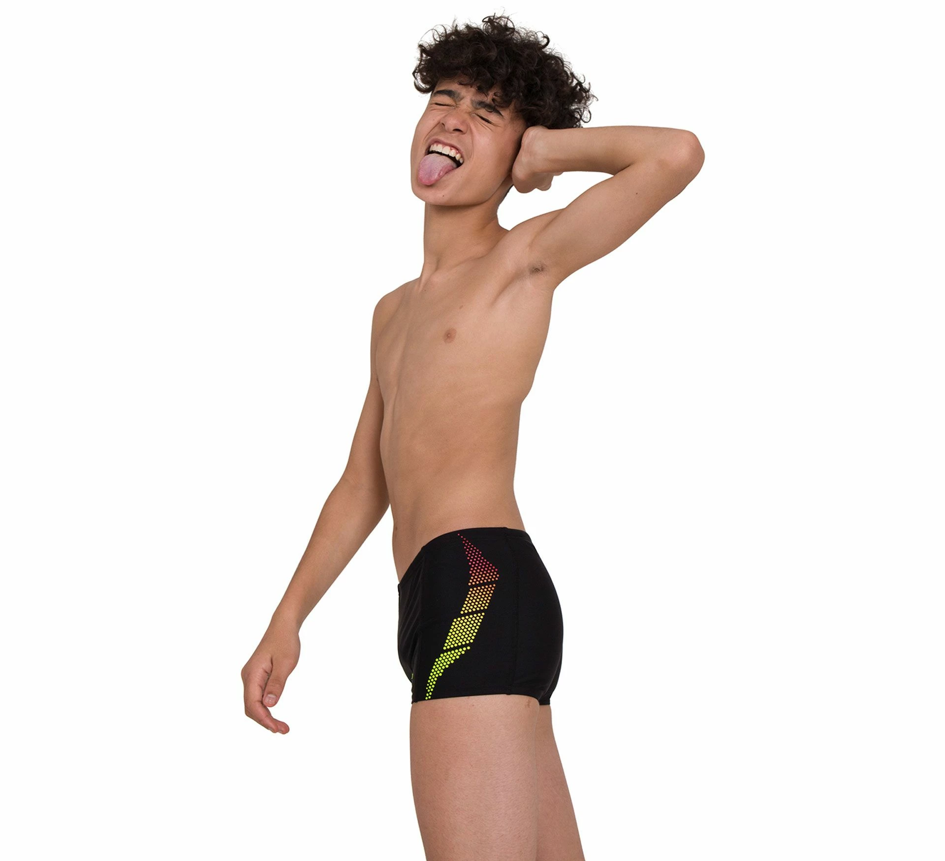 Die Speedo Plastisol Placement Schwimmshort für Jungens ist eine lange Badeshort mit kurzen Hosenbeinen die sich perfekt fürs Schwimmtraining oder – tournier eignet.