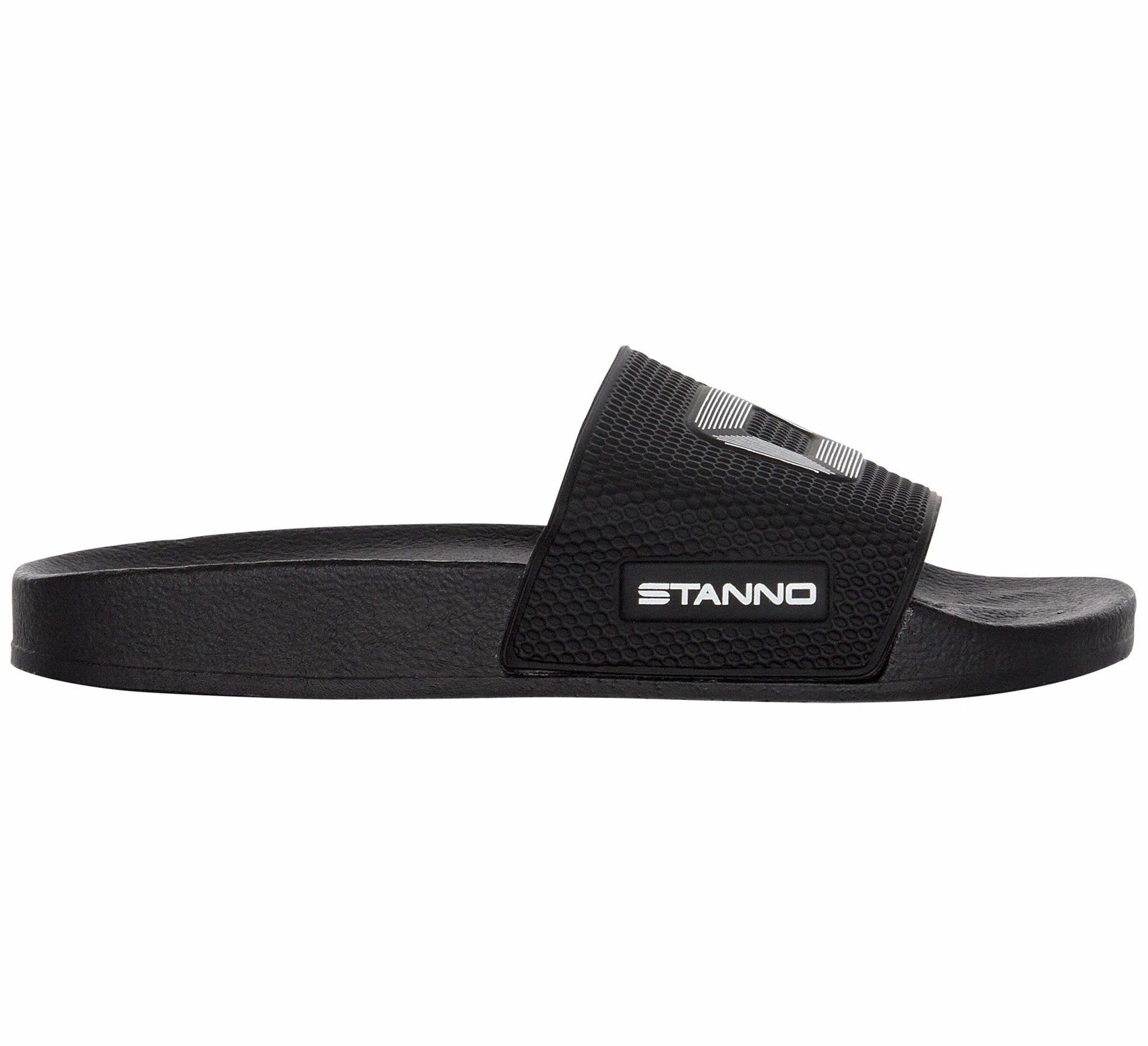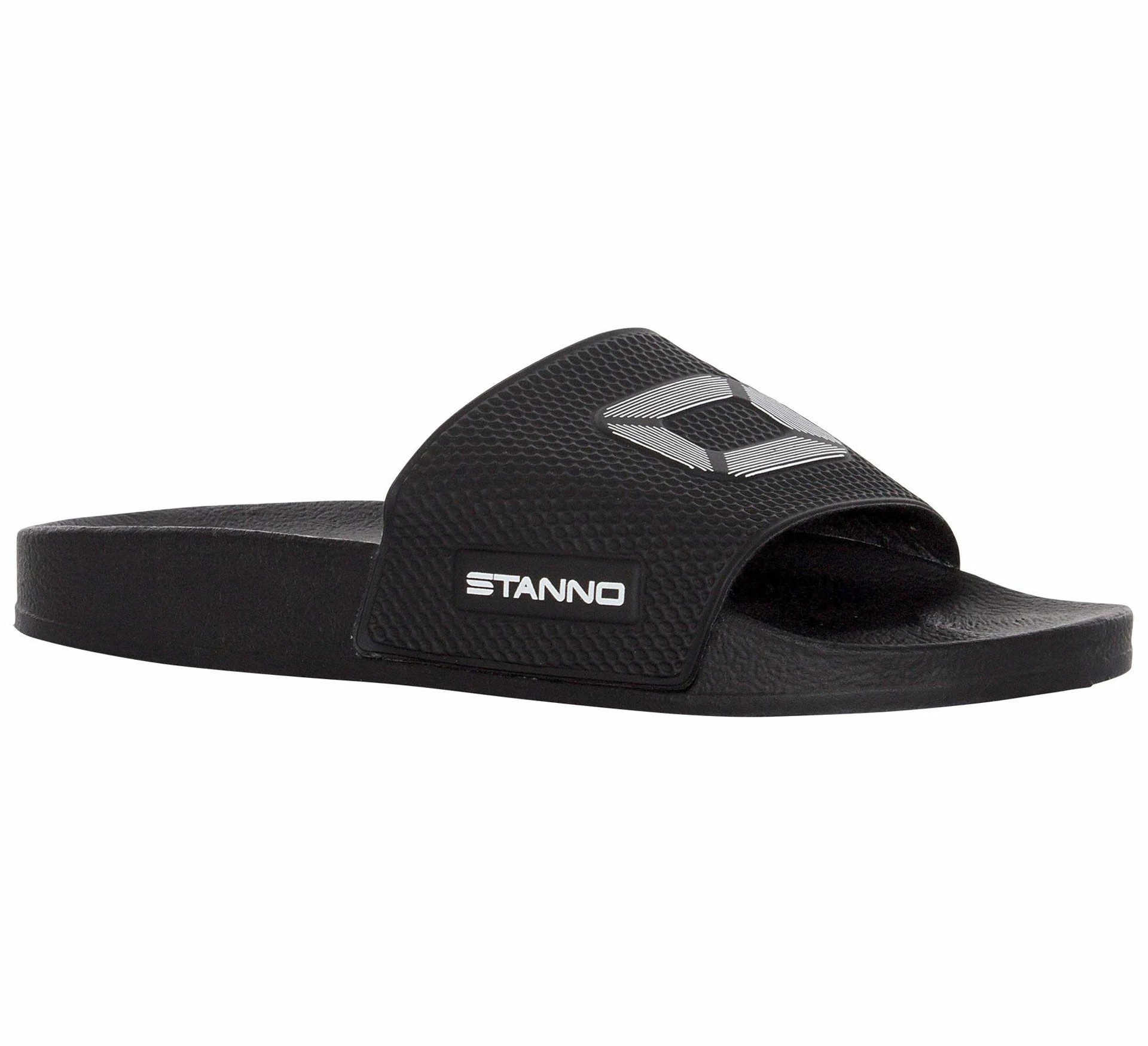 Die Stanno Stadium II Slipper für Kinder eignen sich perfekt für warme und sonnige Tage oder für nach dem Sport unter der Dusche. Diese Slipper sind sehr leicht und haben ein anatomisch, vorgeformtes Fußbett. Hierdurch wird eine perfekte Passform geboten. Auf dem Fußband befindet sich das Stanno Logo.